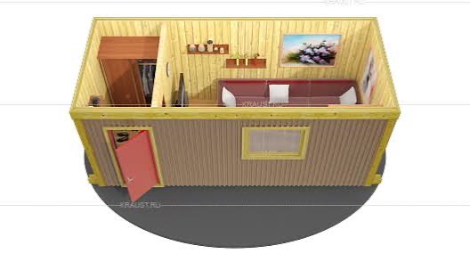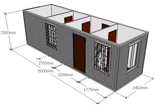 Высота стандартная снаружи 2,5 м внутри 2,2 м. Каркас металлический, утепление 100 мм пенопласт ПСБ-25. Внутренняя отделка МДФ-8мм/ОСБ-9мм/ПВХ панели